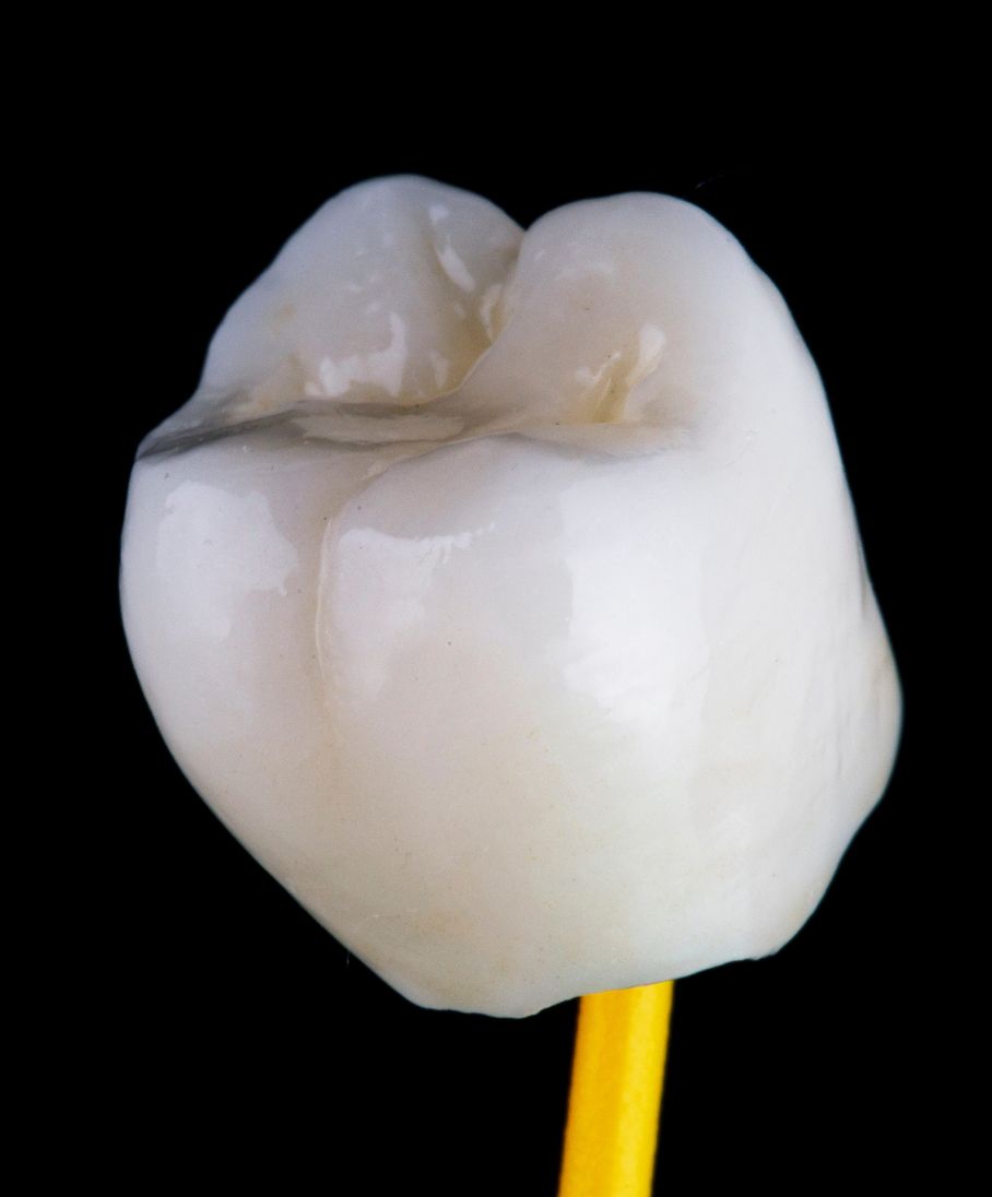 Neste caso clínico, um dente com desgaste severo e alteração de cor foi totalmente reabilitado com uma coroa em porcelana de alta resistência, garantindo um resultado natural e harmonioso.